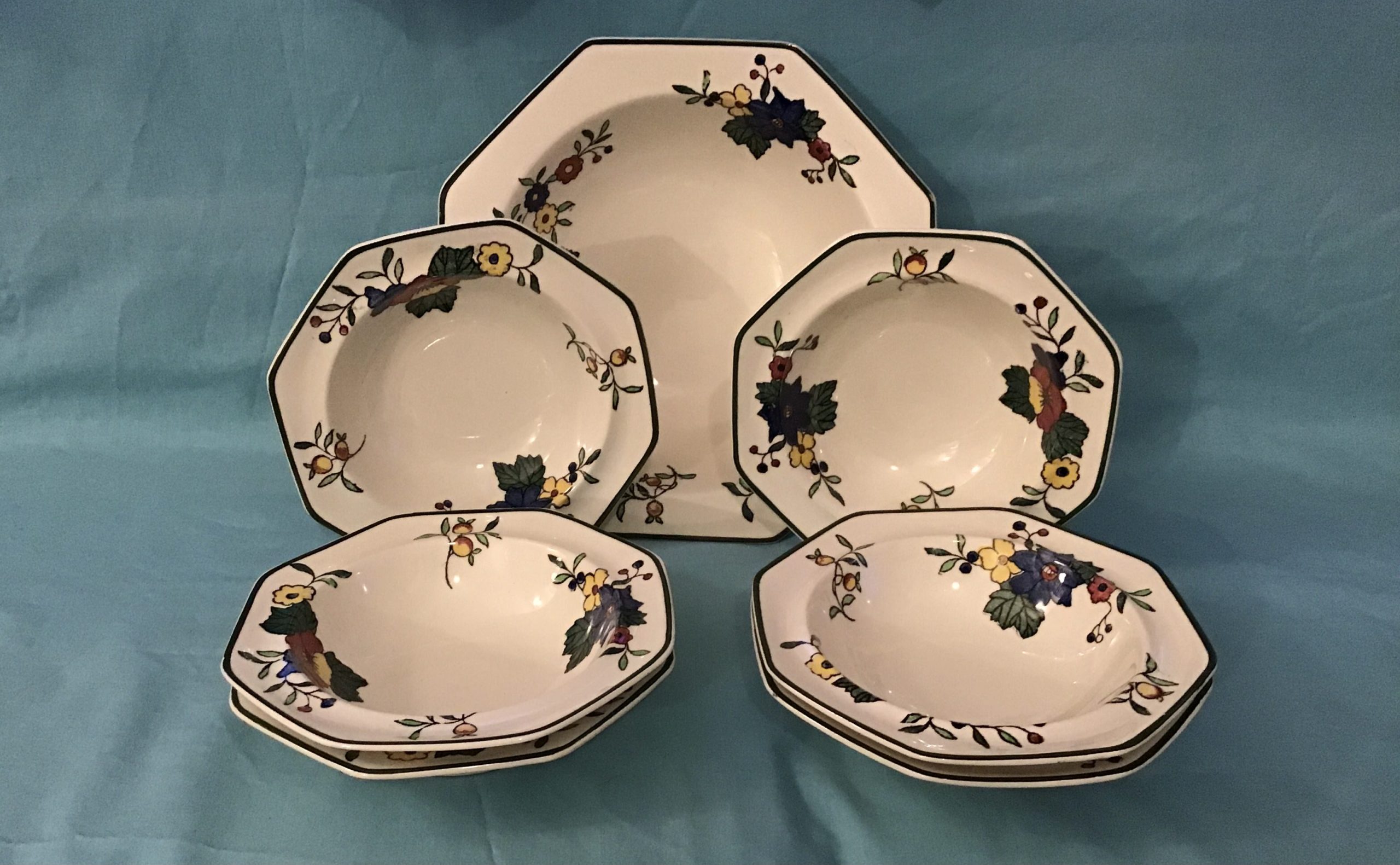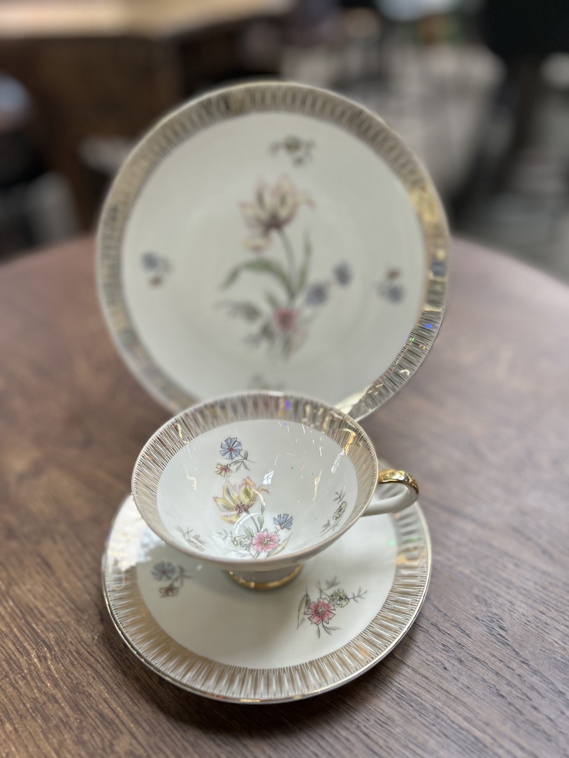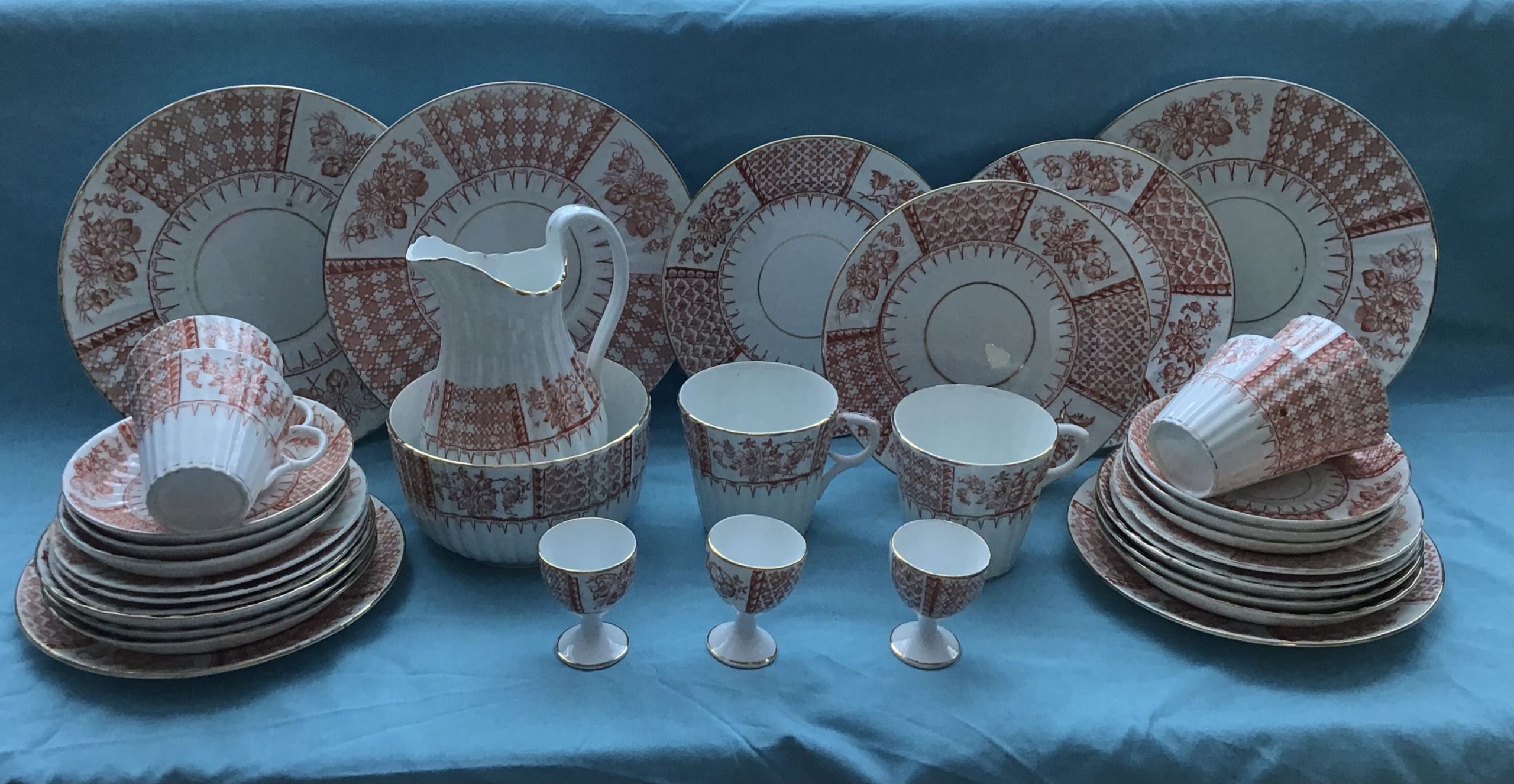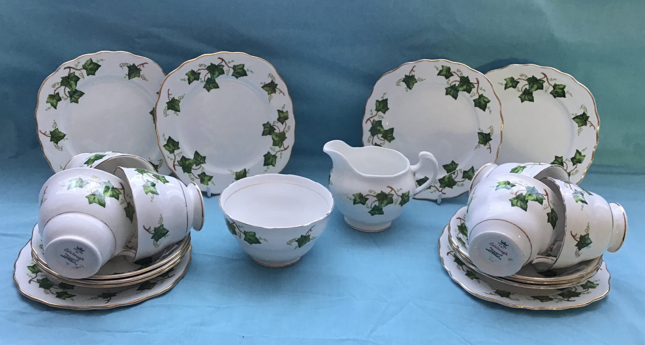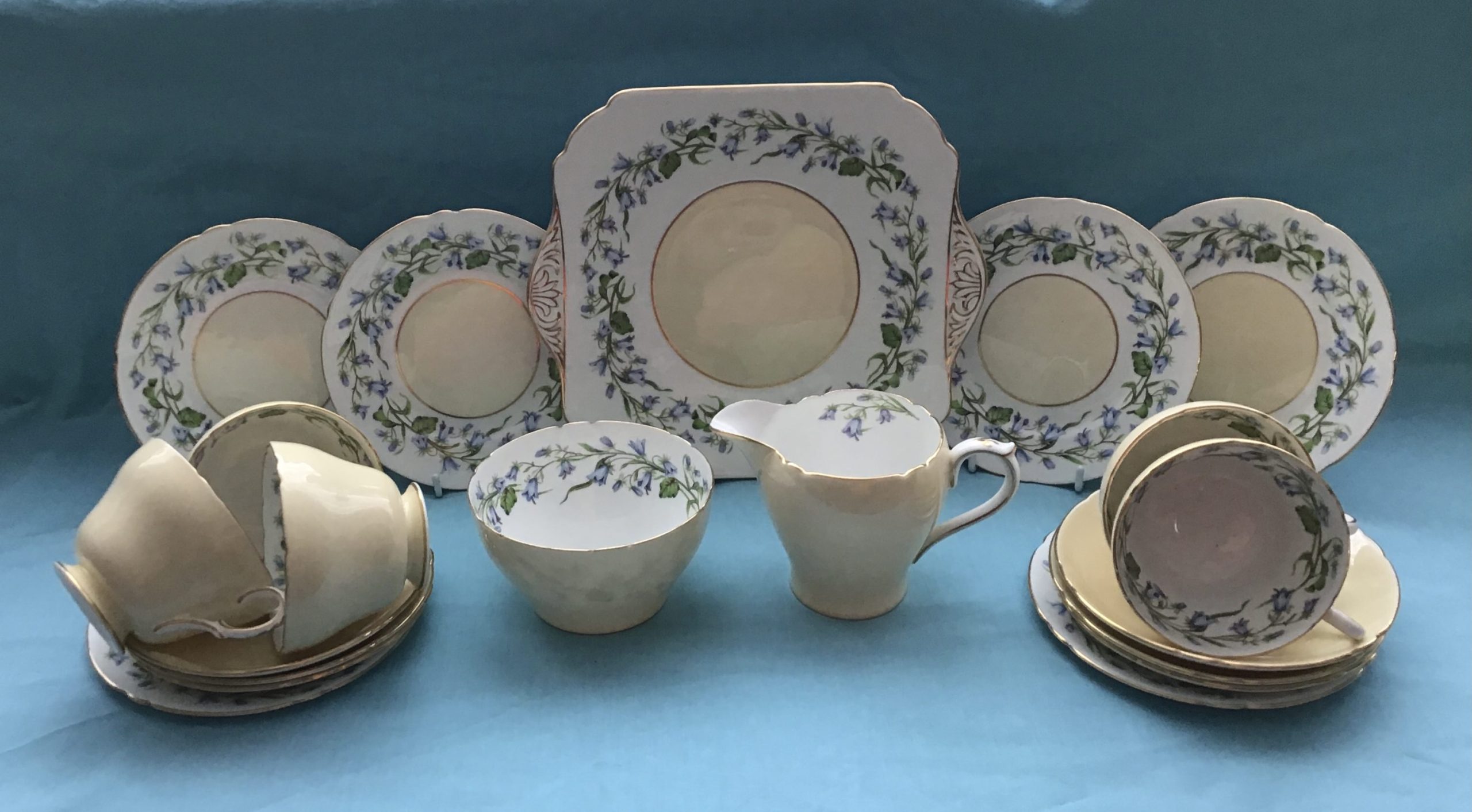 Paragon Country LaneRoyal Albert Val D’orParagon BelindaColclough Royale (Full Set, cake stand available)Colclough Royale Cake StandRoyal Standard, Fancy FreeParagon RockeryRoyal Standard, FascinationRoyal Albert, BraemarSalisbury China Imari StyleParagon, BelindaTuscan, Bluebird (extra 3 cups)Aynsley, Pagoda Set with two extra Cup & SaucerShelley, Harebell (cup missing)Gossamer, Harlequin 6 Trio’sFrench Porcelain White and GoldRoyal Doulton CamelotTuscan China Green and WhiteA selection of Vintage China c1880Jackson & Gosling Old EnglishDenby SandstoneShelley, Wildflowers19c Staffordshire Chinese ChinaRoyal Doulton WindermereColclough Ivy LeafCanonsbury Wild CloverAynsley, Bluebell Three Trio’sRoyal Cauldron Trio’sAdderley, Manor Roses Set of FourWild Bros Evelyn 5 Trio’sParagon, Queen Anne 8 Soup Bowls & SaucersBlue Cornflower Sandwich SetStaffordshire, Imari Style Sandwich SetWoods Bulslem Forrest Flowers by Susie CooperMelba Ware, Floral Set 6 Trio’sRoyal Grafton Yellow Rose Two Trio’sDenby MemoriesQueen Anne Old County SprayRoyal Winton, Petunia Part Tea SetAlboth & Kaiser Alka KunstRoyal Crown Derby, Bali 6 Tea PlatesLimoges Set of 4 PlatesPair of Limoges PlatesParagon, Iceland Poppy Pair of Cake PlatesWedgwood Cake PlatesMyott, Coronation Rose Pair of Cake PlatesRoyal Doulton, Art Deco Fruit SetRoyal Grafton Majestic Cake StandLeighton Pottery Burslem Cake StandMinton & Holins Japanese ImariAynsley, Green & Gold Cake Plate1989 Christmas PlateAynsley, Bluebell Cake PlateArt Deco Pressed Glass PlateVictorian Large Meat PlaterF Winkle & Co Partridge Tea PotYugoslavian China made for AvonRoyal Doulton Tea Pot (a/f)Tom Tit Teapot StandWinterling, Bavaria TrioSutherland, Art Deco TrioCarlton China, Springtime Swallows, TrioAynsley, Bluebell TrioParagon, Primrose TrioParagon, Woodland Bluebell TrioWedgwood, Colchester Cup and SaucerHadfords, Blue Poppy Cup and SaucerCrown Staffordshire, Forsythia Cup and SaucerBurleigh Ware, Zenith Cup & SaucerColclough, Lyndon Cup & SaucerHeathcote China The PathwaysRoyal Albert GossamerRoyal Albert Flower of the MonthRoyal Cauldron Milk & Sugar BowlDuchess China Sugar Bowl & Milk JugAynsley, Bluebell Sugar BowlPrice Kensington Mr Celery PotCarlton Ware, Scotch Whisky Water JugCut Glass and Plated Silver Tantalus